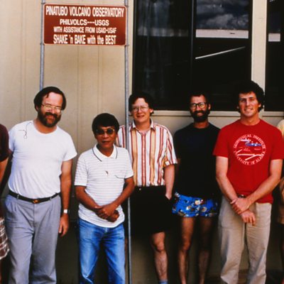 On 15 June 1991 one of the largest volcanic eruptions of recent times occurred at Mount Pinatubo in the Philippines. The volcano had been dormant for over 600 years. The eruption produced high-speed avalanches of hot ash and gas, giant mudflows, and a cloud of volcanic ash hundreds of kilometres wide. Witness has been speaking to volcanologist, John Ewert, who was part of the team monitoring the volcano. (Photo: Clark Airbase Philippines. John Ewert 4th from right. Photo courtesy of John Ewert)