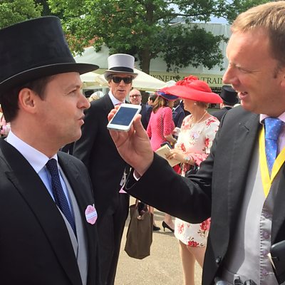 Tim Dellor put his best jokes to Declan Donnelly, of Ant and Dec fame, as he arrives at Royal Ascot.