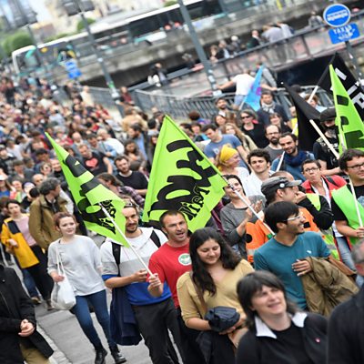 Listeners have a lot of questions about the European Union and the UK's referendum on whether to leave or remain. PM asked the BBC's Europe correspondent Damian Grammaticas and assistant political editor Norman Smith to answer a selection. Damian Grammaticas answers Susan Ellis question: "We are constantly being told that the EU protects workers' rights. So why are the French workers striking against new French laws which increase working hours, increase pension age and make it easier for employers to hire and fire staff?" (Photo: Protesters march during a demonstration against the labour law reform Copyright: AFP/Getty Images)