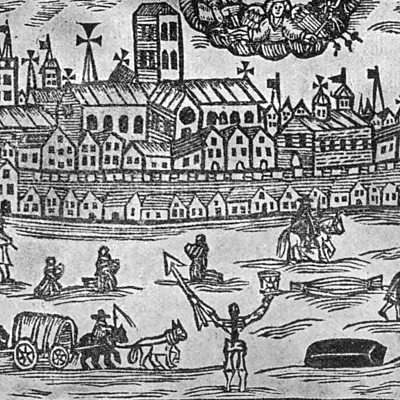 In the summer of 1665, London was gripped by one of the worst epidemics in its history. The outbreak later became known as the Great Plague. Witness hears eye-witness testimony from the time, including an account by famous diarist Samuel Pepys. (Photo: The angel of death presides over London during the Great Plague of 1664-1666, holding an hourglass in one hand and a spear in the other. Published in The Intelligencer, 26 June 1665. Credit: Hulton Archive/Getty Images)