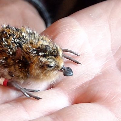 An extraordinary bird conservation project in Russia, which steals the eggs of the spoon-billed sandpiper, the most endangered shorebird in the world. There are only 200 breeding pairs left in the wild. Hence a daring conservation project at the bird’s breeding grounds in Russia. Eggs of the migratory shorebirds are taken from wild nests in the far north-eastern region of Chukotka and the chicks which hatch are reared in the safety of protected aviaries. That is much safer than being brought up in the wild where most chicks are eaten by other birds and foxes. Conservationists Roland Digby and Evgeny Syroechkovskiy talk to Ann Jones about spoonie ‘headstarting’. (Photo: Headstarted spoon-billed sandpiper chick, newly hatched. Credit: Roland Digby/WWT)