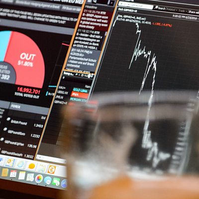 The chairman of Britain's Royal Bank of Scotland, Sir Howard Davies, puts the sharp fall in the value of the pound sterling into perspective, and tells us where the weak points are in the UK economy. Also, the BBC's Joe Miller speaks to film makers and artists in Berlin as they weigh the effects of Brexit on their industry. And Elliott Grove, founder of the UK's Raindance Film Festival and the British Independent Film Awards, tells us how he thinks Brexit might work to the advantage of Britain's film sector. (Photo: Trader’s computer screen in Hong Kong shows Brexit poll and GBP exchange rate. Credit: Anthony Wallace/AFP/Getty Images)
