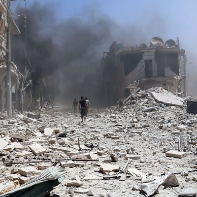 'Maha' is a Syrian woman who says her husband poured petrol on her and set her alight. She adds that women in the country are being subjected to much more extreme domestic violence than before the conflict began. Jumping from the beautiful 450-year-old Mostar Bridge in Bosnia-Herzegovina has been a rite of passage for young men for centuries. It was a historic landmark before it was destroyed during the conflict of the 1990s and has since been rebuilt. Some have died in the attempt, but for the legendary diver Emir Balic it has been a life's work. Dorothy Bohm is an acclaimed street photographer. She was born in 1924 in what was then East Prussia on the Baltic Coast. At the age of fourteen her parents sent her alone by train to England to escape the Nazis. Dorothy arrived in London carrying a parting gift of a camera from her father that was to shape her life and career. (Photo: Rubble covers the street of Aleppo, 11 June, 2014. Credit: Zein al-Rifai/AFP/Getty Images)