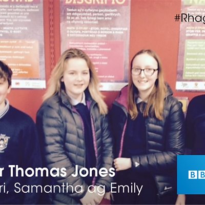 Dewis cerddorol Iwan, Harri, Samantha ag Emily o Ysgol Syr Thomas Jones Amlwch