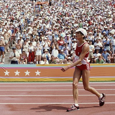 In 1984, the women's marathon was held in the Olympic Games for the first time. But to the horror of the crowd in Los Angeles, one of the runners, Gabriela Andersen-Scheiss of Switzerland, entered the stadium in a state of virtual collapse from heat exhaustion. The 40-year-old ski instructor was not used to the hot Californian climate. She had to hobble her way around the final lap of the race. The crowd of ninety thousand people in the LA Memorial Colosseum cheered her on as she made it to the finish line. Andersen-Scheiss tells Ashley Byrne about her ordeal. The programme is a Made-In-Manchester Production that was first broadcasted in 2016. (Photo: Andersen-Scheiss finishing the race in 1984. Credit: Getty Images)