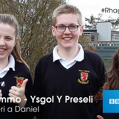 Dewis cerddorol Ffion, Teleri a Daniel o Ysgol Y Preseli
