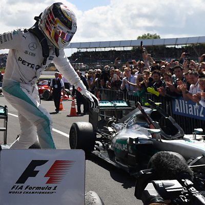 Mercedes' Lewis Hamilton wins his third successive British Grand Prix. This clip is originally from 5 live Formula 1 on Sunday, 10 July 2016.