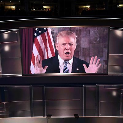 Delegates from across the US give Donald Trump the necessary votes to confirm him as their candidate to take on Hillary Clinton in November. Join Fergus Nicoll in Cleveland, where the Republican Party is holding its national convention. He's joined by Marketplace reporters Nancy Marshall-Genzer on the convention floor and Lizzie O'Leary in New York. Also with Fergus in Cleveland is Tracey Nichols, Director of Economic Development on the City Mayor's cabinet. We'll report live on the convention and take a tour round the city of Cleveland to talk about what's drawing young people there, how some of the city's most deprived communities are making ends meet, and the city's pride and joy -- the Rock and Roll Hall of Fame that is one of America's cultural landmarks. (Photo: Donald Trump speaks on screen to delegates in Cleveland. Credit: Jim Watson/AFP/Getty Images.)