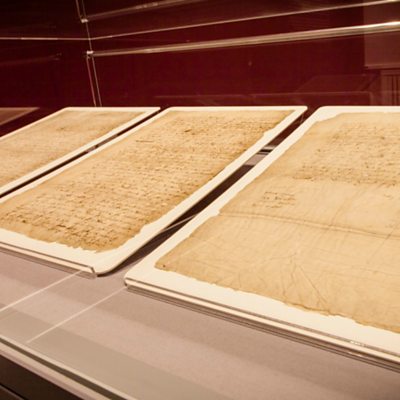 William Shakespeare's last will and testament is on display in Stratford-upon-Avon for the first time since it was written 400 years ago. It will only be on show there for three weeks before it is hidden away again to stop it fading. Dr Katy Mair is head of early modern records at the National Archives and told Sarah Montague that his signature could have been the last thing he had ever written. Paul Taylor is head of collections at the Shakespeare Birthplace Trust and spoke about how they plan to protect this "priceless" document. (Image: Shakespeare's will on display. Credit: National Archives.)