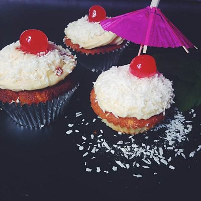 Ingredients: For the cake: - 200g Stork (or softened butter if you prefer) - 300g caster sugar - 200ml coconut cream - 2 eggs - 400g drained pineapple pieces - 2 tablespoons of the pineapple juice from the can - 60ml rum - 300g self raising flour For the icing: - 250g unsalted butter - 450g icing sugar - 50ml coconut cream - Handful of desiccated coconut - 60ml rum - Lime zest To decorate: - Desiccated coconut - Lime zest maraschino cherry - Cocktail umbrellas (optional) Method: 1. Heat oven to 170C (150C fan). In a large bowl, cream together the Stork and caster sugar until light and fluffy. 2. Add the coconut cream and eggs and beat until soft and silky. Add the pineapple pieces and stir in then add the pineapple juice and rum. Lastly sift in the flour and mix well. 3. Pour mixture into cupcake cases in a muffin tray and bake for about 20 minutes or until a skewer is removed clean from the centre. Cool completely on a wire rack. 4. To make the buttercream icing, beat the butter until light and fluffy, gradually add the icing sugar until thoroughly combined. 5. Add the coconut cream, desiccated coconut rum and lime zest and beat together before putting it in a piping bag. 6. Once the cakes are completely cool, pipe over the icing then sprinkle with a layer of desiccated coconut, grate the lime zest over and place a cherry in the centre of each one.
