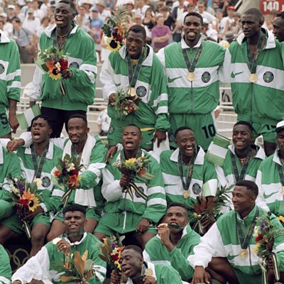At the 1996 games in Atlanta, Nigeria became the first African team to take football gold at the Olympics. A side featuring many future legends beat Argentina and Brazil on their way to a victory that brought joy to a nation still under military dictatorship. Alex Last talks to Supereagles midfielder Sunday Oliseh. (Photo: The Nigerian team celebrate. Credit: Getty Images)