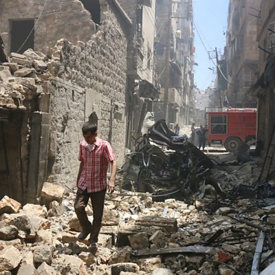 Dr Samer Attar is an orthopaedic surgeon. He lives and works in Chicago but has worked in the city of Aleppo, in Syria, several times. He has just come back from his most recent visit. He tells Eddie Mair about the difficult decisions he had to make in the underground hospital, with few medical supplies. (Photo: A man walks through the rubble in Aleppo. Credit: Getty Images)