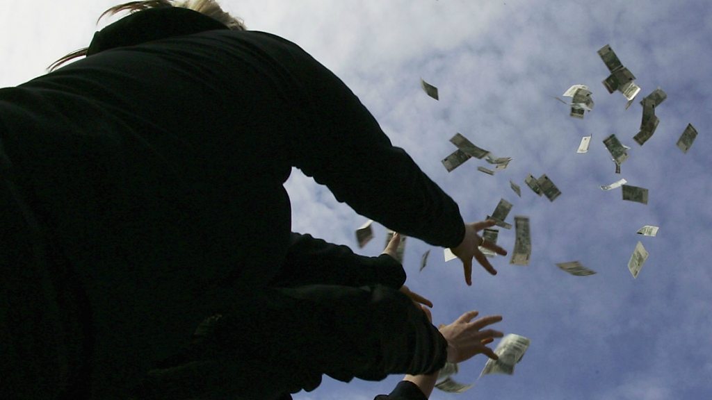"Helicopter money" was once unthinkable, but now it is being openly discussed as a possible solution to stubbornly low economic growth. So if we were all given free money would it finally put the global financial crisis and its aftermath behind us? Martin Wolf, from the Financial Times, asks economist Eric Lonergan, former European Central Bank chief economist Otmar Issing, and Bank of Japan governor Haruhiko Kuroda. (Photo: People grab falling bank notes. Credit:Thomas Niedermueller, Getty Images)