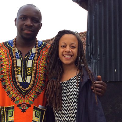 Reporter Amy Nomvula speaks to Butshilo Nleya after his African drumming workshop.