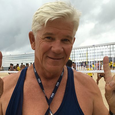 One of the people who campaigned to turn Beach Volleyball into an Olympic sport is the five times world champion, Randy Stoklos. His partner Sinjin Smith and him became known as the "Kings of the Beach" during the 1980s and 90s. He's back in Rio to play in a Legends match and he told the BBC's Ben James in Rio about some of the tricks in good communication during the noisy matches, including those all important hand signals, and how the game has changed over the years. (Photo: Randy Stoklos in Rio de Janeiro. Credit: BBC)