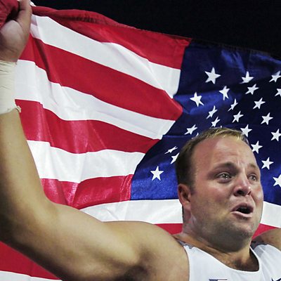 Why shot-putter Adam Nelson received his Olympic gold at the foodcourt in Atlanta airport, and 12 years late! Photo: Adam Nelson cries as he celebrates after winning the men's shot put finals at the 10th IAAF World Athletics Championships in Helsinki 2005. (CREDIT: ERIC FEFERBERG/AFP/Getty Images)