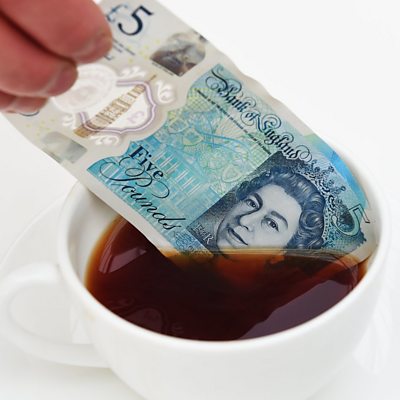 The BBC's John Humphrys test-drives the new British five-pound note by dunking it into a cup of coffee while Tim Halford, managing director for Cardtronics UK & Ireland, the country's largest cash machine operator, tells us why cash still has an important role to play despite the rise in cashless financial transactions. Meanwhile, Harvard University economist Kenneth Rogoff explains why central banks and the gun lobby in the US are loathe to give up on paper money and Nick Williamson, CEO and founder of Credits, tells us how block-chain software might eventually be used to underpin national currencies. Manuela Saragosa presents. (Photo: The new polymer £5 note; Credit: Joe Giddens/WPA Pool/Getty Images)