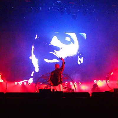 Sam Day chats to Chase & Status in their dressing room ahead of their headline set.