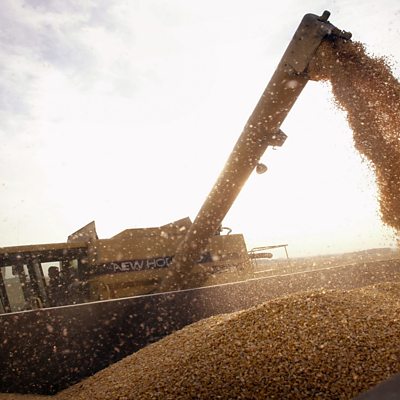 The business of food - how we eat, what we eat and who's running the show. Chemicals giant Bayer has agreed to buy the US seeds and pesticides firm Monsanto for $66 billion. The chemicals and seeds they produce will play a huge part in how well we adapt to the impact of growing worldwide populations and climate change. Sir Gordon Conway, Professor of International Development and former Chief UK government Scientific Adviser, gives us his reaction to the deal and we hear from Lydia Gathenya, Interim Programme Manager at Farm Africa, an NGO based in Nairobi, on drought resistant farming. Could changing what we eat, as well as how it is farmed, also be good for the environment? Two billion people around the world eat insects, which are cheaper and greener protein than sheep, pigs and cows. But is hasn't caught on in Europe or the US. Coalo Valley Farms in Los Angeles are trying to change that. Photo: Corn is loaded on a farm in Illinois in the United States. Credit: Getty Images.