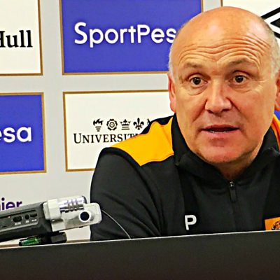 Hull City's Mike Phelan with David Burns after a defeat in the Premier League.