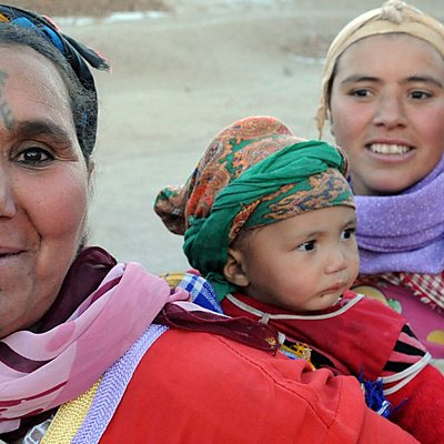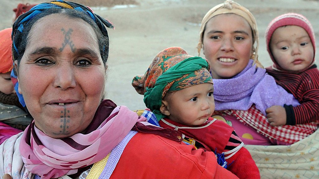 The Amazigh women of Morocco have faced threats to their strong traditions and distinct religious identity for thousands of years. Celeste Hicks travelled high into the Atlas Mountains to find out how the Amazigh are dealing with a new threat – a stricter traditional version of Islam that could undermine their unique way of practising their faith. She hears how the Amazigh are trying to hold on to many of their traditions such as carpet weaving and facial tattoos which the conservative forces that are becoming more influential would find ‘haram’ or forbidden. The Amazigh women are a strong independent force in their historic tribe which date back to the days of Jesus' time on earth and holding on to that identity is a continuing struggle. (Photo: Amazigh women with facial tattoos carry their children on their backs) *The programme have been re-edited since it was first broadcast to ensure that certain translations are more accurate*