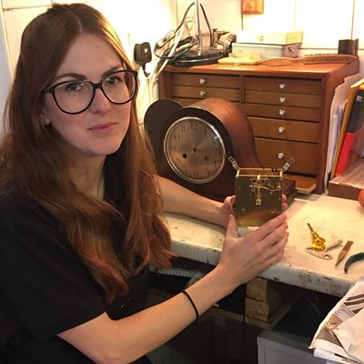 34 year old Corrie has just started working repairing mechanical clocks in Bournemouth.