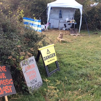 Protesters occupying a site in Swanage say they'll stay until the threat of fracking there is withdrawn. A group of local environmental activists moved onto a field at California Quarry near Durlston Head two weeks ago in a bid to stop drilling for oil and gas. Permission for exploratory work was granted by the County Council three years ago. Former Green Party leader Natalie Bennett lent her support to campaigners when visiting the site - and our political reporter Tristan Pascoe was there.