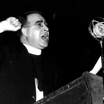 In the 1930s, a controversial Catholic priest called Father Charles Coughlin had a weekly radio programme with millions of listeners in the United States. As the decade wore on, Father Coughlin's views became so extreme and anti-Semitic that he was seen as a threat to national security by the White House. Simon Watts introduces recordings of Father Coughlin and talks to his biographer, Sheldon Marcus. PHOTO: Father Coughlin at the microphone (Associated Press)