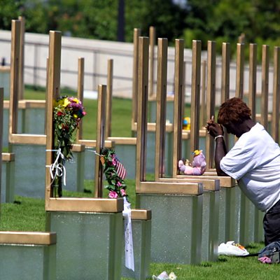 In April 1995 a devastating bomb ripped through the Alfred P Murrah Federal Building in Oklahoma City and 168 people died and many more were injured. Numerous investigations tracked what happened before the bombing. Now Emma Barnett travels to Oklahoma City to find out what happened afterwards. Speaking to survivors and to those left behind, to first responders and state officials, Emma hears stories of resilience, defiance and success against the odds. She finds something more than that, too. Visiting the Oklahoma City memorial, she hears about the ‘Oklahoma Standard’, a phrase coined to describe how thousands of individuals, from a city and state built on notions of ‘rugged individualism’, came together to support those who suffered, and those who came to help. And she hears how the ‘Oklahoma Standard’ helped give the city an identity it had previously lacked, providing a platform to transform the city both psychologically and physically. Emma hears another side to this story, too. The money donated after the bombing was used to cover healthcare, education and counselling costs. But then, after the families who suffered in the 9/11 attacks in New York City received millions of dollars of compensation, those in Oklahoma City began to feel that they had been left to fend for themselves. (Photo: Ellajean Thompson mourns at the chair that represents her aunt Laura Jane Garrison, 11 June 2001, Oklahoma National Memorial. Credit: Joe Raedle/Getty Images)