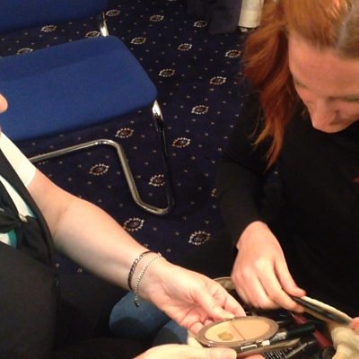 Jo and Deana chat animatedly about Jo’s mother-in-law, Jan, who in her younger days was a clothing model and local Beauty Queen. The family wanted to give Jan a final make up and hairdo.