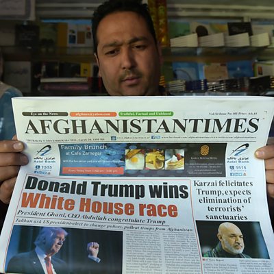 "Ours was not a campaign, but rather an incredible and great movement... of Americans from all races, religions, backgrounds and beliefs." The words of President-elect Donald Trump at the end of an extraordinary, and successful, run for the White House. David Amanor gathers together Hernando Alvarez of BBC Mundo, Hanan Razek of BBC Arabic and Dawood Azami of BBC Pashto to reflect on the campaign. Ivan the Terrible rides again He was a leader and visionary - and one of the most feared tyrants in history. Opinion is divided about Russia's first Tsar, Ivan the Terrible, who ruled in the 16th century. That hasn't stopped the authorities in the town of Oryol erecting a statue of him. Vsevelod Boika of BBC Russian was there for the unveiling. Makdous: the Syrian soul-food struggling for survival It's a delicious mix of aubergines, chillies and walnuts, and an essential part of a Syrian breakfast. This is the time of year when Syrian women would usually be surveying rows of newly bottled makdous, having spent days boiling and stuffing kilos of aubergines. But as Alma Hassoun of BBC Monitoring explains, war has seriously disrupted this process. Goat Days Goat Days by Indian author Benyamin is the best-selling true story of the exploitation of a migrant worker from Kerala in Saudi Arabia. The significance of the book is explained by BBC Trending's Megha Mohanin and Zainul Abid of BBC Monitoring, both Keralite by birth. Impressions of Kashmir In recent months, there's been a surge in tensions between Pakistan and India over the disputed region of Kashmir, with deaths on both sides of the de facto border. BBC Urdu's Suhail Haleem visited Indian-administered Kashmir for the first time to report on the crisis. He shares his impressions of what used to be a favourite holiday destination for many Indians. And Fifi Haroon's pick of the world wide web. Photo credit: Jim Watson, Getty Images