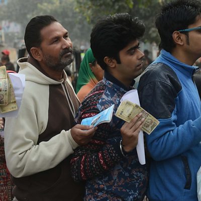 India today is flying by the seat of its pants - so says one economist, in response to Prime Minister Modi's bold experiment to abolish many of the country's bank notes. The idea is to cut out corruption. But the result, in some places, has been pure chaos. We have a report from the streets of Kolkata, and get the views of a former IMF chief economist, Harvard Professor Ken Rogoff, author of "The Curse of Cash". Can India transition to a more digital, less cash-dependent economy? Thoughts on this from Kosta Peric, the Gates Foundation's Deputy Director of Financial Services for the Poor. (Picture: People queue outside a bank to exchange defunct rupee notes in Amritsar; Credit: Narinder Nanu/AFP/Getty Images)