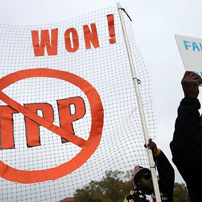 President-elect Donald Trump says the US will quit the Trans-Pacific Partnership trade deal. Lori Walloch is director of global trade at the anti-corporate lobbying group, Public Citizen, and welcomes the news. Plus we have analysis from Lien Hoang of Bloomberg in Vietnam. Also in the programme, one of America's leading central bankers wants Donald Trump to back his idea to stop another banking crash. We hear more from Neel Kashkari, the head of the Minneapolis Federal Reserve. In a world of driverless cars, BBC technology correspondent Rory Cellan-Jones has been investigating who should be responsible for paying for the car insurance. Plus what were the worst films of 2016? Forbes magazine has produced its annual list of financial flops, and Natalie Robehmed from Forbes fills us in. (Picture: an anti-TPP sign. Picture credit: Getty Images.)