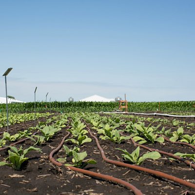 Scientists involved in a trial on tobacco plants say they have improved "the most important biological process on the planet" - photosynthesis. The breakthrough could boost crop yields and help meet the global demand for food, as lead researcher Professor Stephen Long, from the University of Illinios, explains. (Photo: Irrigation lines snaking through photoprotection field trials at the University of Illinois South Farms. Credit: Associated Press /University of Illinois)