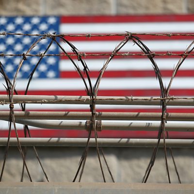 On just his second day in office, President Obama signed an executive order to close the Guantanamo Bay prison within a year. It’s now approaching the end of his second term and prisoners are still being held there. Why has it been so difficult to close? And what will happen under President Trump, who made campaign promises to expand it? Join Owen Bennett Jones and his guests on this week’s Newshour Extra as they discuss what the Guantanamo Bay detention camp has achieved and what its future will look like. (Picture: razor wire and an American flag around the perimeter of the Guantanamo Bay detention centre in Cuba. Credit: John Moore/Getty Images)
