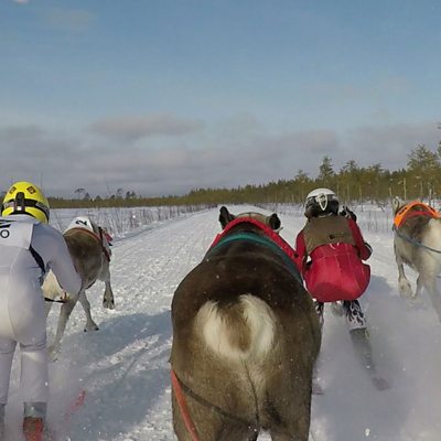 Competitive reindeer-racing is a popular sport across the Arctic Circle. In Finland, the season runs from November to April and good jockeys are local celebrities. They need strong biceps and serious guts: strapped onto cross-country skis they're hauled behind reindeer at up to 60km/hour. Meanwhile, the animals are trained to peak fitness. Owners give their reindeer massages and whisper last minute instructions in their ears. Cathy FitzGerald travels to the snowy north of Finland to find out more about the sport. She visits the little town of Inari, where the cappuccinos come with tiny antlers sketched in the foam and the local bar (PaPaNa, ‘The Reindeer Dropping’) serves pizza topped with bear salami. Each year, the top 24 fastest reindeer compete here to be crowned: The Reindeer King. They fly around a two-kilometre race track carved on the surface of icy Lake Inari to the cheers of hundreds of spectators. There’s a social side to the competition, of course: a winter village grows up around the track, where herders can browse for cow-bells, snow-mobiles and fox-fur hats. And at night, there’s dancing under the northern lights at Hotel Kultahovi, where Eero Magga croons his big hit, ‘Poromiehen Suudelma’ – ‘The Reindeer Herder’s Kiss’ – to an appreciative reindeer-racing crowd. Picture: Competitors and their reindeer set off across the snow, Credit: Kirsten Foster