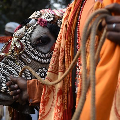 Less than three years after India's Hindu nationalist government came to office, the country is gripped by a rising tide of extremism - from a stifling of free speech to brutal attacks on religious minorities, all in the name of radical Hinduism. Jill McGivering meets the people subjected to the extremism and goes out with one of the notorious "cow protection" patrols - armed Hindu vigilante groups who spread terror and assault those rumoured to eat beef or kill the cows which for Hindus are sacred. (Photo: An Indian sadhu (Hindu holy man) holds onto a cow at a protest against their killing. Credit: Sajjad Hussain/Getty Images)