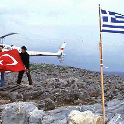 A Turkish cargo ship ran aground on a tiny rocky island in the Aegean Sea in December 1995. But a dispute between Turkey and Greece over who owned the island sovereignty almost brought the two nations to war. Agreement still hasn't been reached over the territory called Kardak by the Turks and Imia by the Greeks. Cagil Kasapoglu spoke to the former Turkish diplomat Onur Oymen and the former Greek foreign minister, Theodoros Pangalos, about the crisis. Photo: Turkish journalists prepare a Turkish flag to replace the Greek flag on Kardak/Imia island, January 27, 1996 (AP Photo/Hurriyet)