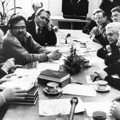 One of the most potentially dangerous legacies of the collapse of the Soviet Union was its huge nuclear arsenal and nuclear weapons industry. There were particular concerns about the Soviets' former nuclear testing site at Semipalatinsk in Kazakhstan, a vast swathe of contaminated land where there were tunnels with spent plutonium. When the Soviet Union ended, the site was left open to scavengers. Louise Hidalgo has been hearing from the former head of America's nuclear weapons laboratory, Dr Siegfried Hecker, about the long secret operation by Russian and American scientists to make the site safe in what's been called the greatest nuclear non-proliferation story never told. Photo: the first historic visit by American nuclear scientists to the secret Soviet city of Sarov where Moscow developed nuclear weapons, February 1992. First on the left is the great Russian physicist, Alexander Pavlovsky. Next, looking down, is Yuli Khariton, the father of the Soviet atomic bomb. Opposite, with a white turtle-neck jumper, is Dr Siegfreid Hecker, then director of Los Alamos Laboratory where America developed the world's first nuclear bomb (Credit: Dr Siegfreid Hecker)