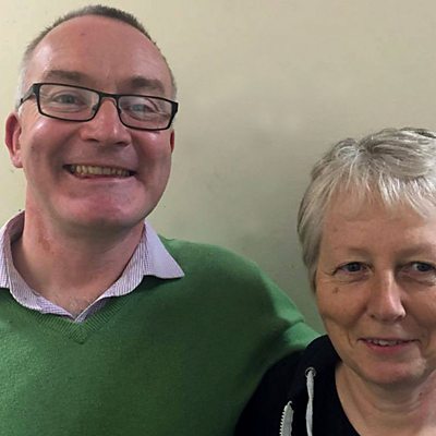 Iain Urchardan a' còmhradh ri neach-ionnsachaidh na seachdain Liz NicIllEathain