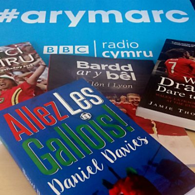 Bryn Tomos yn pori drwy rai o lyfrau pel-droed yr Euros