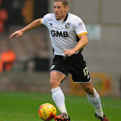 Port Vale assistant manager Michael Brown speaks to Lee Blakeman after Vale's 4-0 loss.