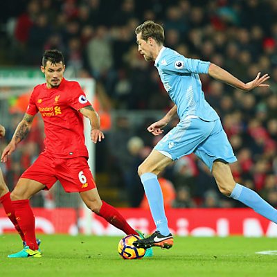 Stoke striker Peter Crouch reacts to The Potters' 4-1 defeat at Liverpool.