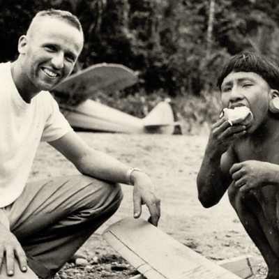 In January 1956, members of the Auca tribe in Ecuador attacked and killed five American missionaries. They had made contact with the isolated tribe to try to convert them to Christianity. Mike Lanchin speaks to Steve Saint and Valerie Shepard, children of two of the victims, who later met their fathers' killers. Photo: Nate Saint and Wao, a member of the Auca tribe, January 1956 (courtesy of Saint family)