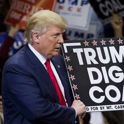 The incoming administration of President Trump has frightened many in the international environmental community. The result of US election in November was announced during the 2016 Marrakech UN Climate Change Conference, a meeting where most delegates were working to deliver on the promises of the previous Paris accord. Instead, a new US direction seemed to have emerged, with some in the new US cabinet going so far as to suggest the US should withdraw altogether from Paris, scrap the US’s own Clean Power act, and re-open coal mines. Roger Harrabin explores whether the Climate Deal is dead, and whether the EU and other countries, such as China and India, might follow the Trump suit and relax their low-carbon initiatives. Image: Republican presidential nominee Donald Trump holds a sign supporting coal during a rally at Mohegan Sun Arena in Wilkes-Barre, Pennsylvania on October 10, 2016, credit: Dominick Reuter/AFP/Getty Images