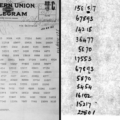 In 1917, British code-breakers exposed a German plot against the United States which helped alter the course of World War One . The Americans had remained neutral during the first three years of war, but by 1917, Germany was planning to restart unrestricted submarine warfare which it feared would trigger America's entry into the war on the Allied side. German foreign minister, Arthur Zimmermann, proposed a Mexican attack on the United States. Photo: (L) The Zimmermann telegram in code as sent from Washington to Mexico (R) A portion of the telegram as decrypted by British intelligence.(US National Archives and Record Administration)