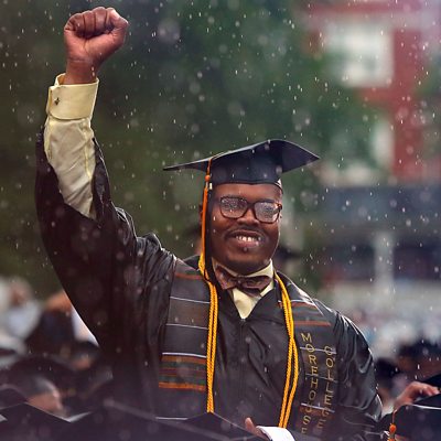 Matthew Bannister goes to Morehouse, an historically black, male college in Atlanta, which prides itself on producing the black leaders of tomorrow. He first travelled there eight years ago, on the eve of President Barack Obama's election and now he's back as the country's first African American leader leaves office and Donald Trump is sworn in. He hears the stories of Morehouse men past and present and finds out what they think about racial divisions in the US today. We hear from former student turned lawyer, Chadrick Mance who stands up for those who have been "bullied or exploited". Dr Duane Jackson describes how he was persuaded to enrol as a student at Morehouse by the college's most famous graduate Dr Martin Luther King in the 1960's, and he's still there today as a professor. Graduate Frederick Anderson relives the moment he was singled out by President Obama when he gave a commencement speech at the college. Also there that day was Anre Washington who remembers that, despite the thunder and rain, the graduating class were inspired by the president's words. Morehouse president Dr John Silvanus Wilson explains why he chose to go to Morehouse after experiencing racism at his predominantly white high school in Philadelphia, his classmates in Atlanta included Jeh Johnson, the current secretary of homeland security and film director, Spike Lee. Musician Tim Maxey also travelled south for his education, he tells Matthew why he was initially nervous about going to an all black male college. Back in 2008 Matthew spoke to Isaiah Scott, he was just beginning his college career, but now he's in the working world and reflects on what it's like going from a majority black institution to work meetings where he's sometimes the only African American in the room. (Picture: Frederick Anderson. Credit: AP Photo/Atlanta Journal Constitution/Curtis Compton.)