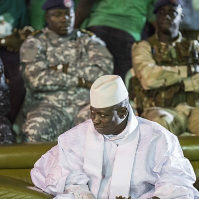 The Gambian President Yahya Jammeh who refuses to step down now faces the prospect of a military intervention by West African forces. The midnight deadline for him to leave office has passed with no word from Jammeh, who is disputing last month's election victory for Adama Barrow. Earlier on Wednesday a military commander with the regional bloc known as ECOWAS (Economic Community of West African States) confirmed that troops were positioning along the Gambia's borders with Senegal. We ask Richard Dowden of the Royal African Society why the Gambia's neighbours are resolved to intervene in this dispute. Today's economic superpowers appear to be squaring up to each other across the great divide of free-trade versus protectionism, with China on the unlikely side of free trade. The British economist Roger Bootle assesses how realistic a role this is for them. Phil Mercer brings us the latest business stories from Australia, including the surprise resignation of the New South Wales Premier Mike Baird, as well as how nostalgic music festivals are reviving the fortunes of small towns in the outback. Plus, how the manufacturers of a smart toilet in Japan have found it necessary to standardise the confusing array of symbols on their top product. Presenter Roger Hearing is joined throughout the programme by Peter Morici, professor of International Economics at the University of Maryland, and Shalini Mahtani, co-founder of the Zubin foundation. (Photo: Gambian President Yahya Jammeh. Credit: Marco Longari/Getty Images)