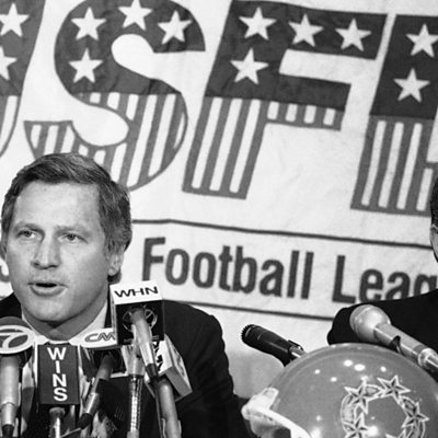 As Donald Trump takes charge of the world's most powerful nation we head back to the early 1980s when his goals were slightly more modest. One of his ambitions was to own a sport franchise and he coveted an NFL team. Unable to make this happen, he purchased the New Jersey Generals American football team of the newly formed USFL. Within two years the league had collapsed and many blame Trump for its demise. The BBC's Joel Hammer reports Photo: Donald Trump (R) at a press conference for the New Jersey Generals of the USFL Credit: AP