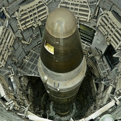 Nuclear weapons and mutually assured destruction are associated with the Cold War but today more countries have the bomb than ever. An American president has the power to unilaterally start a nuclear war. In South Asia, India and Pakistan face off across a volatile border, both countries hold nuclear arsenals primed and ready to fire. Elsewhere, rogue-nation North Korea edges closer to nuclear capability, and a nuclear armed Israel sees its very existence threatened by Iran. So how safe are we from nuclear destruction? Join Owen Bennett Jones and his guests on Newshour Extra as this week they discuss the nature of the threats we face from nuclear weapons: how secure are global stockpiles, and what is the likelihood that any one of the many thousands of nuclear warheads across the globe could be launched intentionally or by accident? (Photo: Titan II nuclear capable missile Credit: Getty Images)